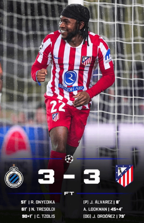 欧冠附加赛马竞3-3布鲁日,防线顽疾导致战绩不稳,次回合或出局